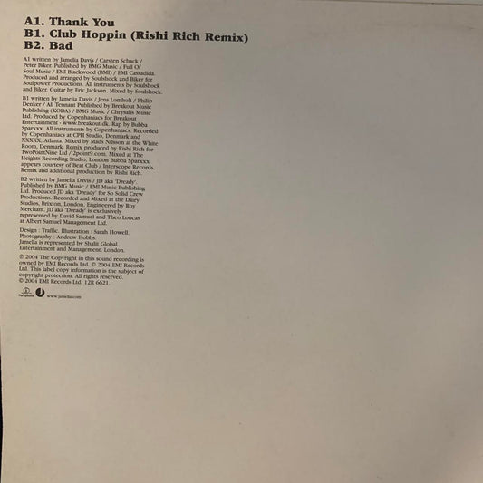 Jamelia “Thank You” / “Club Hoppin ( Rishi Rich Remix )” / “Bad” 3 Track 12inch Vinyl