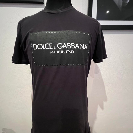 Dolce & Gabbana 100% Cotton Black Logo Print Tee Size Medium Made in Italy