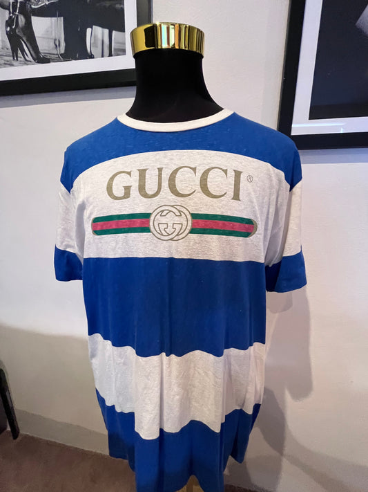 Gucci Block Stripe Logo 100% Cotton Tee Size Large Made In Italy fits Large to XL