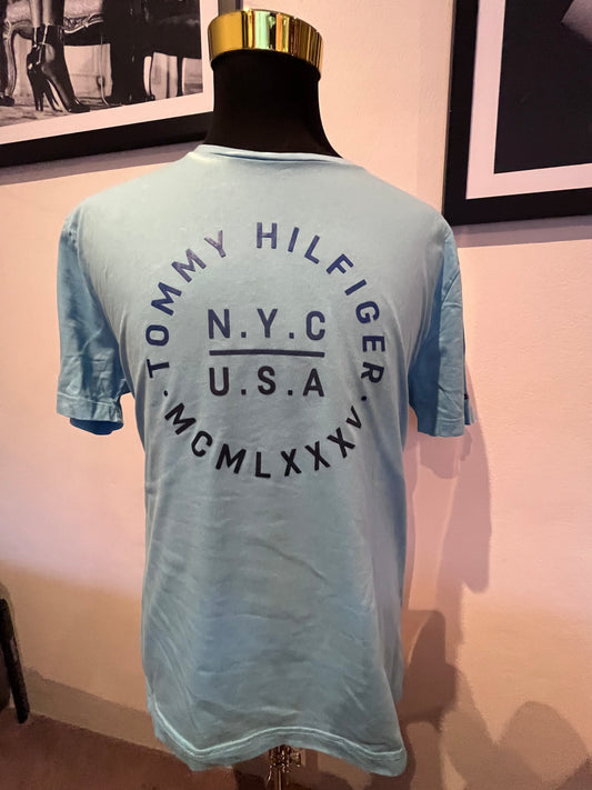 Tommy Hilfiger 100% Organic Cotton Blue Logo Print Tee Size XXL fits more like an XL