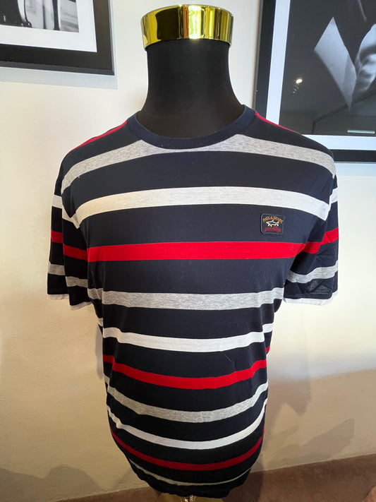 Paul & Shark 100% Cotton Regular Fit Blue Red Stripe Tee Size XL Made In Italy
