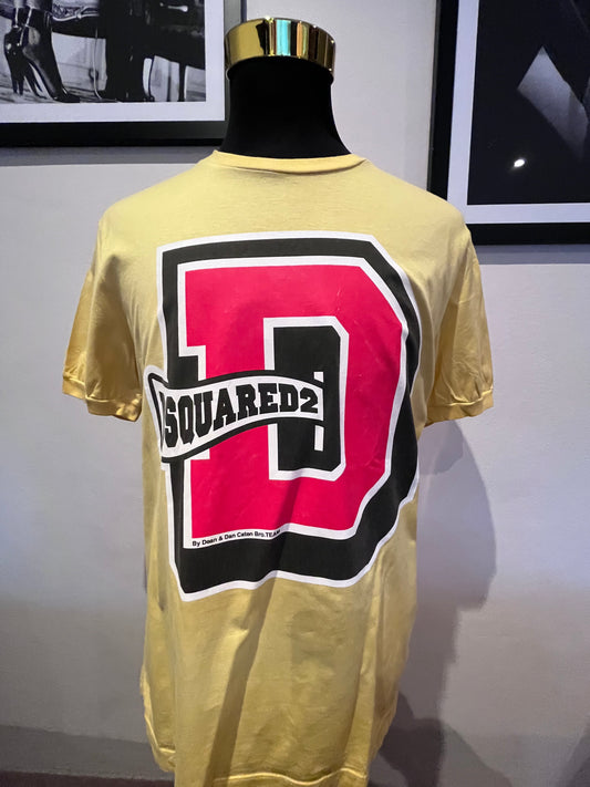 DSquared2 100% Cotton Yellow Logo Print Tee Size XL Made In Italy