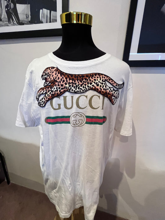 Gucci 100% Cotton Logo Embroidered & Print Tee Size L Made in Italy
