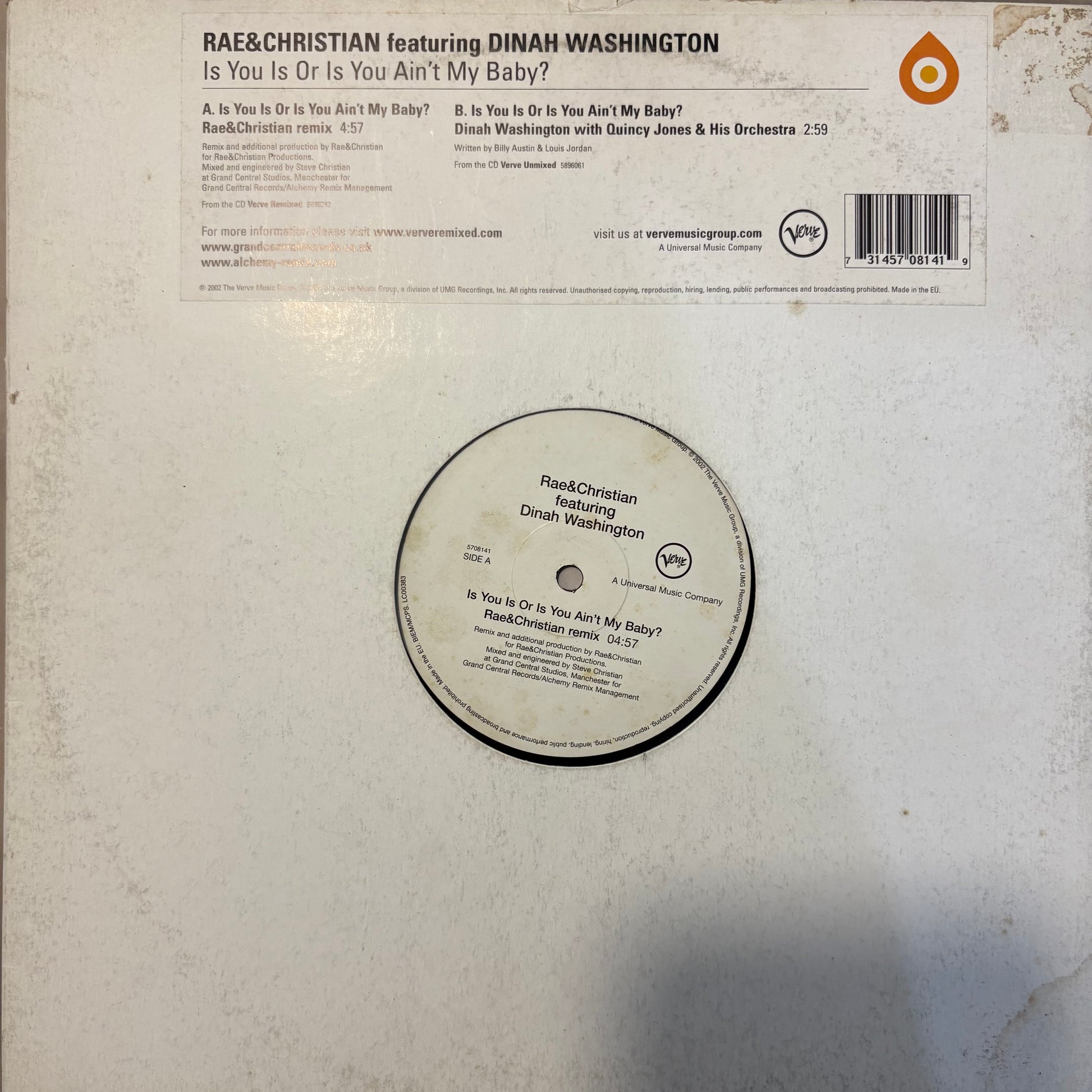 Rae & Christian Feat Dinah Washington “Is You Is Or Is You Ain’t My Baby” 2 Track 12inch Vinyl Record