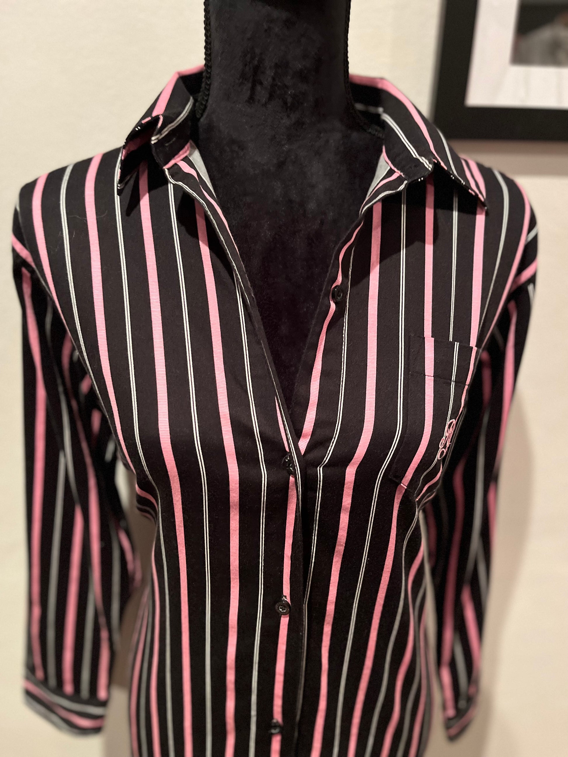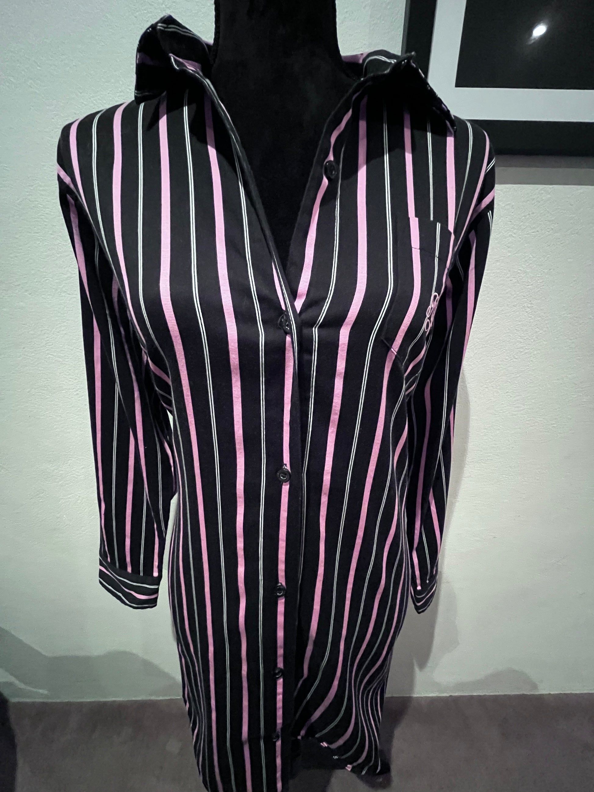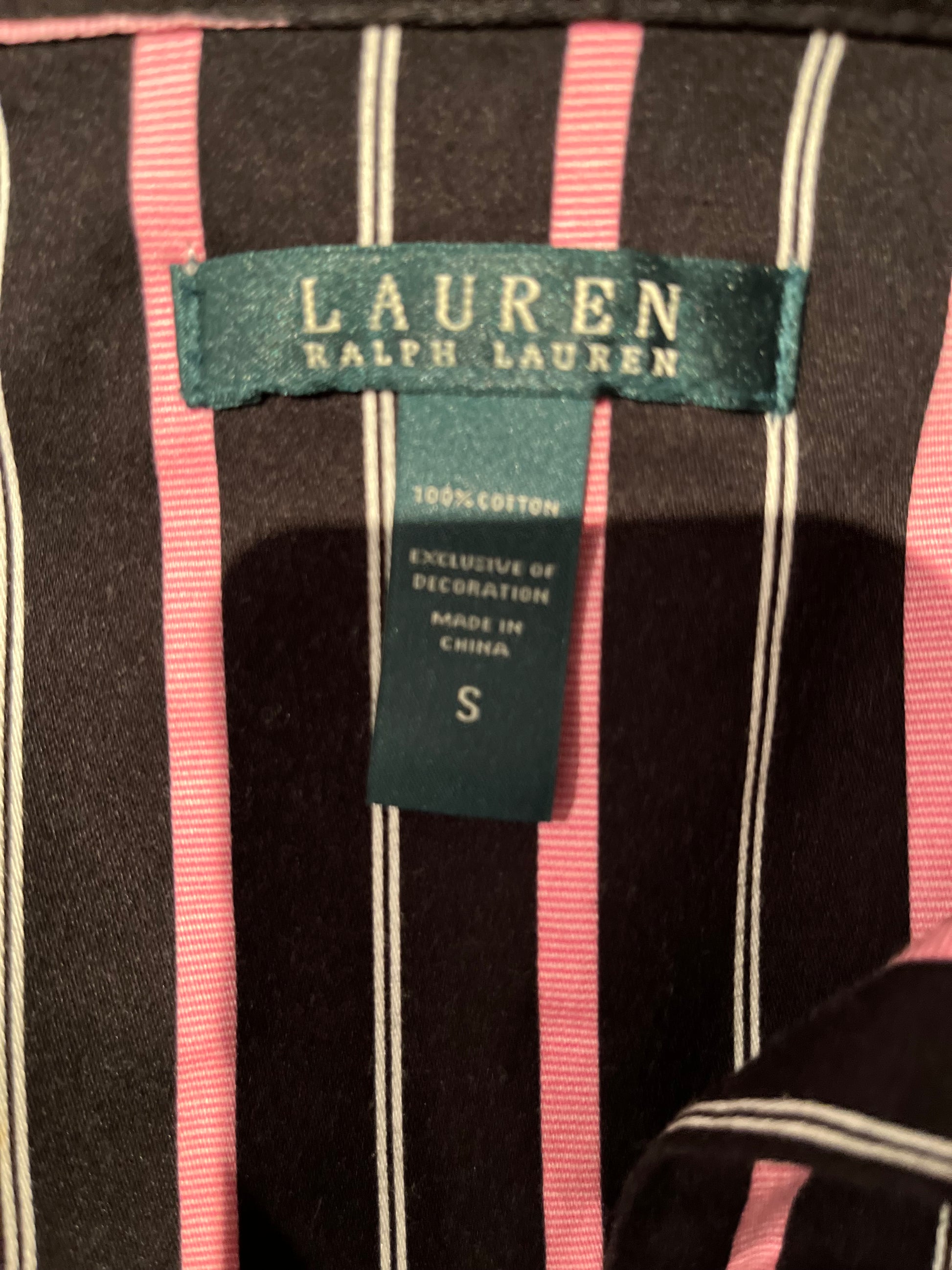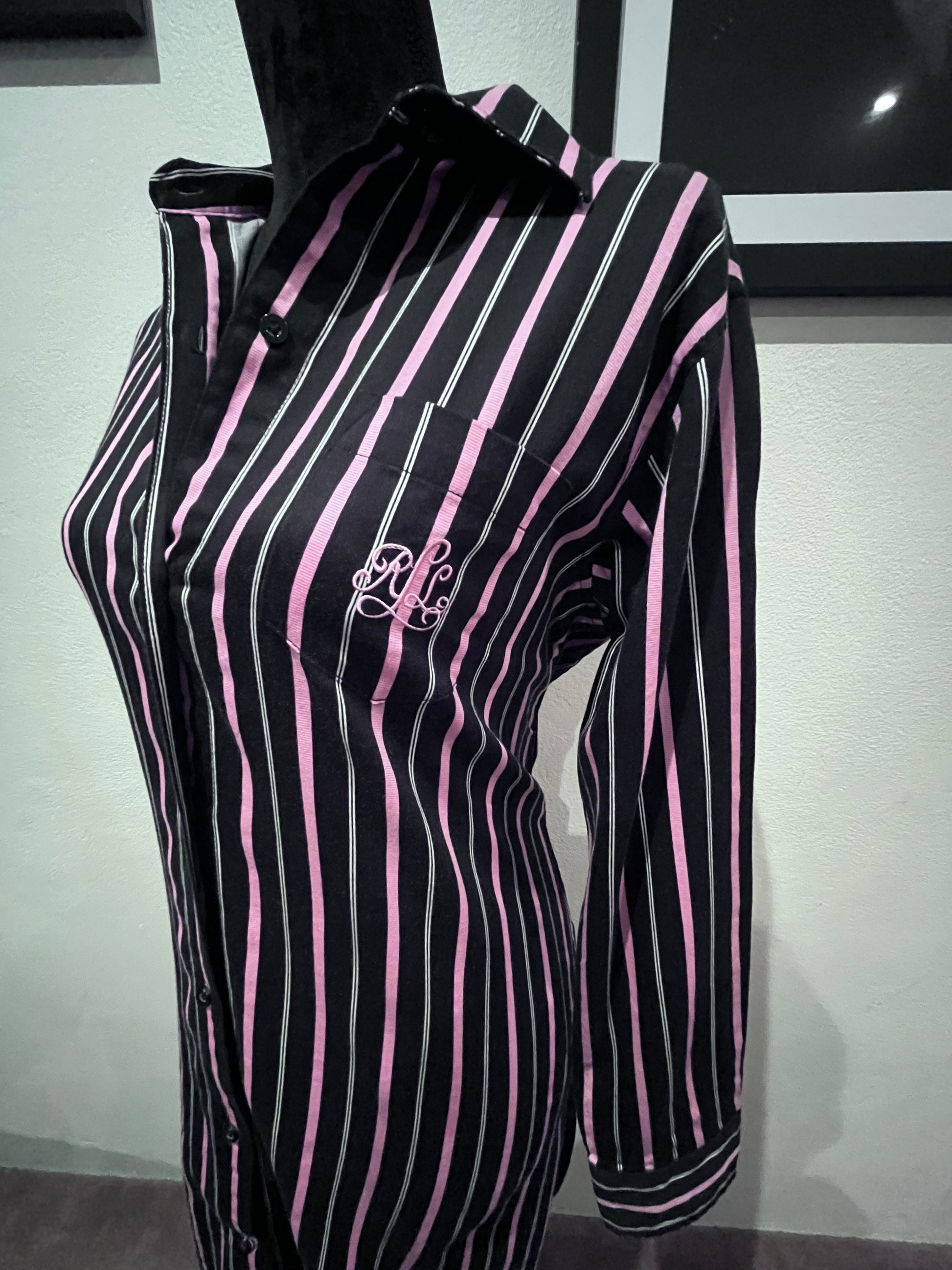 Ralph Lauren Women’s 100% Cotton Black Pink Stripe Shirt Dress Size Small