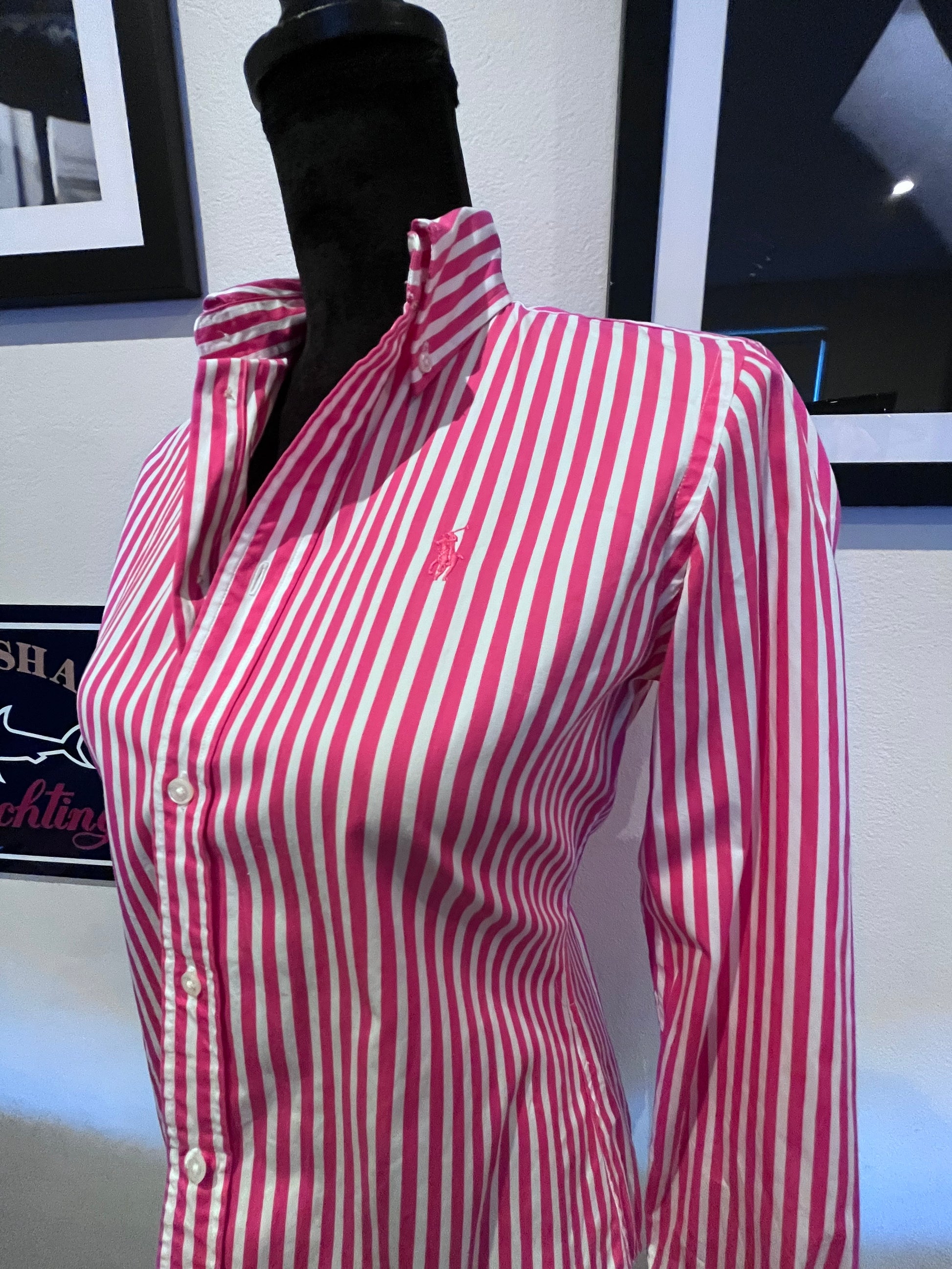 Ralph Lauren Women’s 100% Cotton Pink White Striped Shirt Slim Fit Size 6