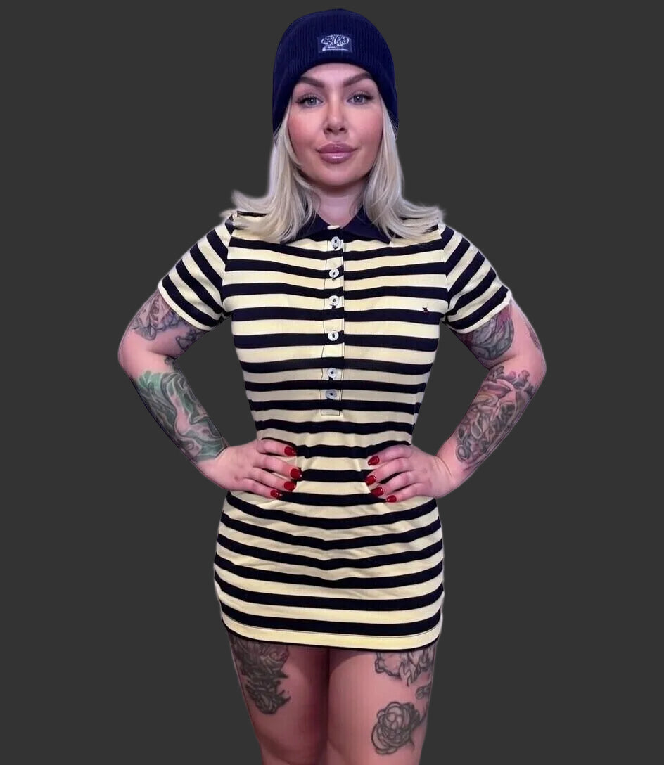 Tommy Hilfiger Tommy Girl 100% Cotton Blue Yellow Stripe Polo Size M
